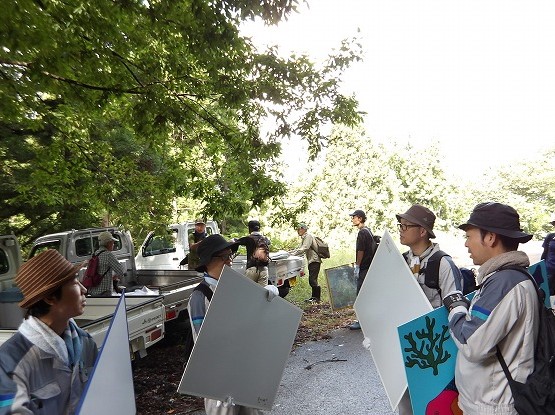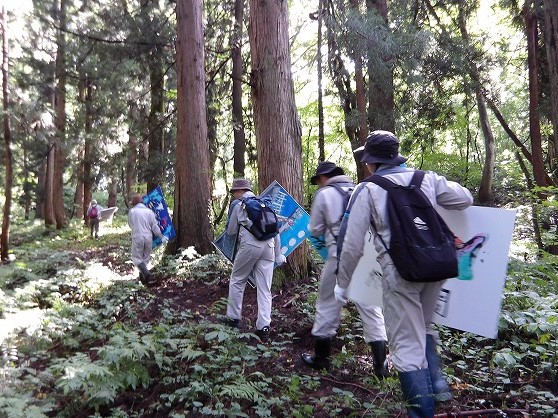 2025/09/24 2025年9月6日 ボランティア活動報告 大島区大平にありますブナの森美術館絵画設置作業に5名が参加しました。 薬師山頂付近に自生するブナ林に野外美術館「ブナの森美術館」が開催されます。 長い時間をかけ山頂へ向かって歩き山頂から見える景色を堪能しました。 運動不足解消とリフレッシュにはピッタリ!と参加者は口を揃えて仰ってました。 【作業風景】 山頂からの景色
